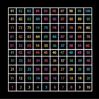 Meerkleurige cijfers 1-100